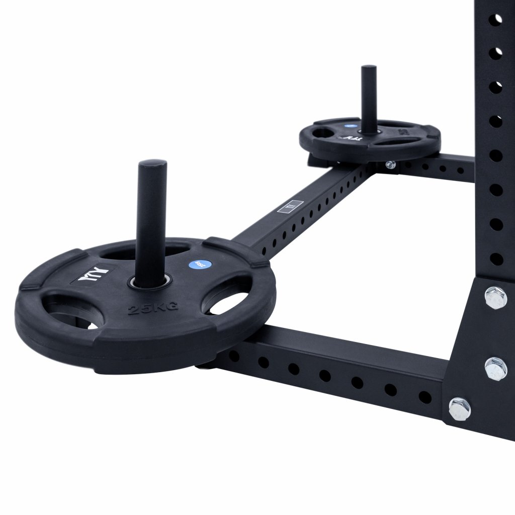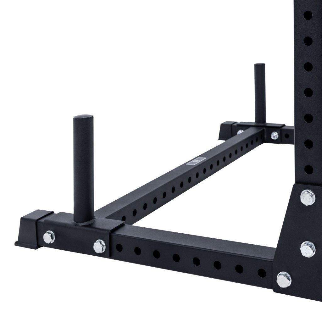 Naša silová klietka - Power rack je vyrobená z vysoko kvalitnej ocele. Vďaka svojej robustnej konštrukcii je stopercentne stabilný. Jeho výška je 230 cm a šírka 123 cm. Skladá sa z pevných joklov, ktorých profil je 60x60x2mm. Zo spodnej časti má gumenné dorazy pre tlmenie nárazov a ochranu proti ošúchaniu podlahy.