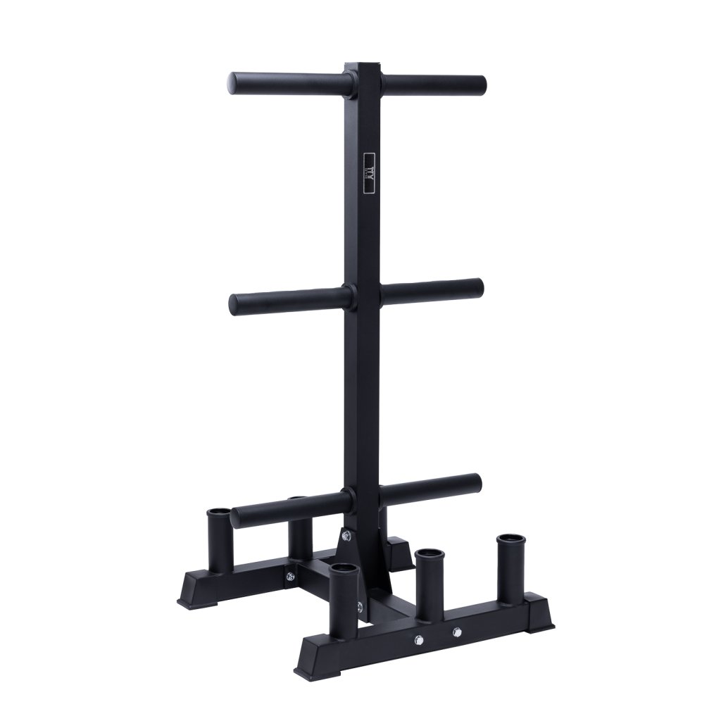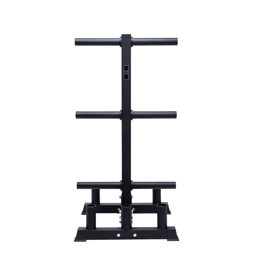 Vďaka vertikálnemu dizajnu šetrí miesto a pomáha udržiavať poriadok v každom gyme, je teda vhodný aj do domáceho gymu. Umožňuje uloženie kotúčov na 6 tŕňov a až 6 osiek naraz.